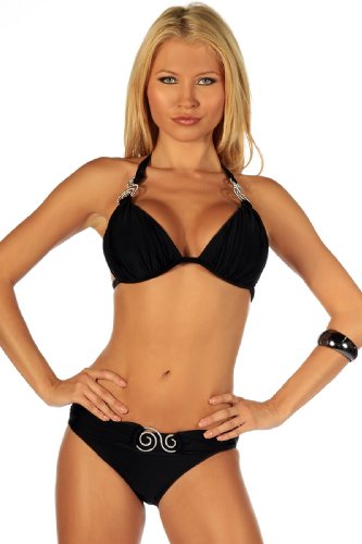 !±8± Black 'S' Ring Decoration Two Piece Halter Hot Beach Sexy Low Rise Bikini Swimsuit